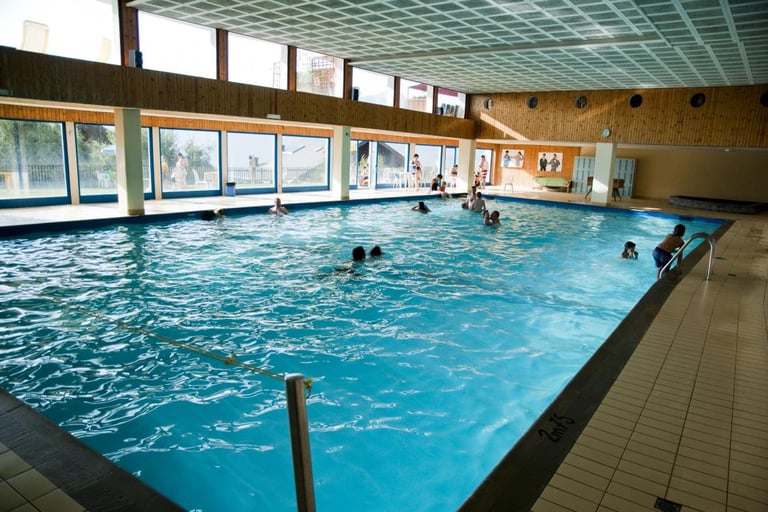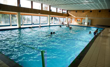 La piscine est chauffée à 27 degrés, un air de 29 degrés et il y a disposition des vestiaires avec des casiers sécurisés.