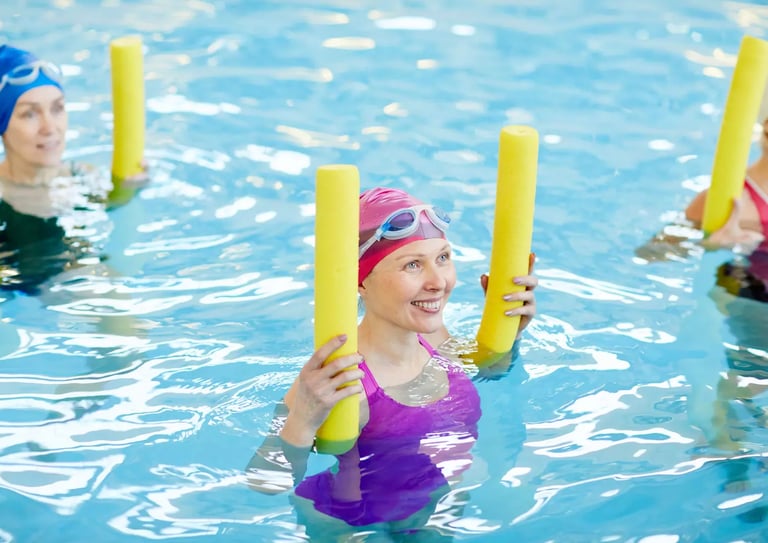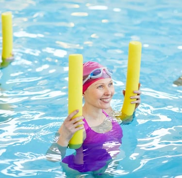 Le principe de l'aquagym est simple : il s'agit de pratiquer la gymnastique douce dans un milieu aquatique, généralement un bassin dans lequel on a pied. Cette activité est praticable par tous quelle que soit sa condition physique et son niveau de natation .